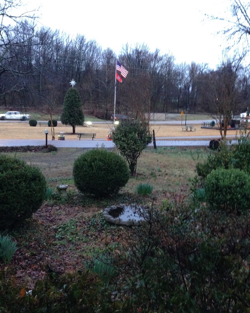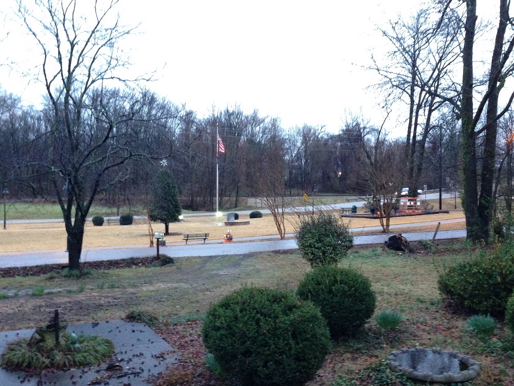 Today’s sunrise is at 6:56 am in Memphis. It’s now 6:16 am. Time to get ready. It seemed rather cool, but I wasn’t sure how cool it was. I covered my shoes in grocer bags again, because I somehow knew the ground would still be wet. My camera was ready, my glasses were in place. I had my sweater. Now I needed to wait just 25 more minutes.
