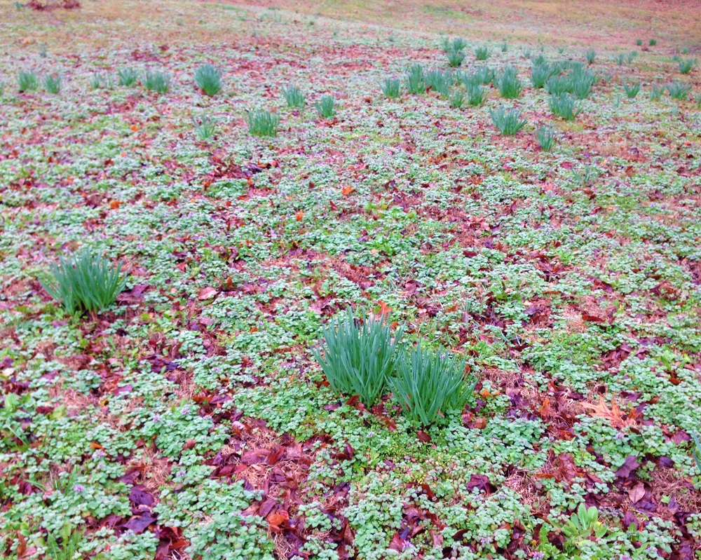 ….I wondered off doing other things. After 7 am I found some dry shoes, covered them with plastic grocery bags held on with rubber bands, set my timer for 20 minutes and set out to walk in the still-wet yard.