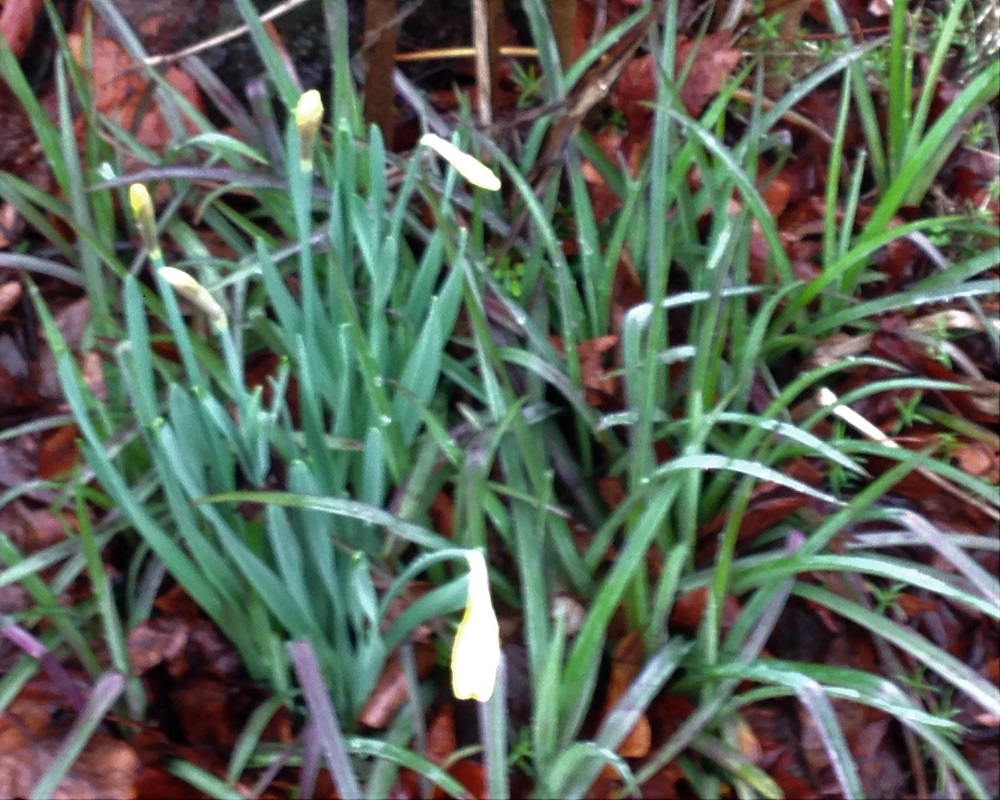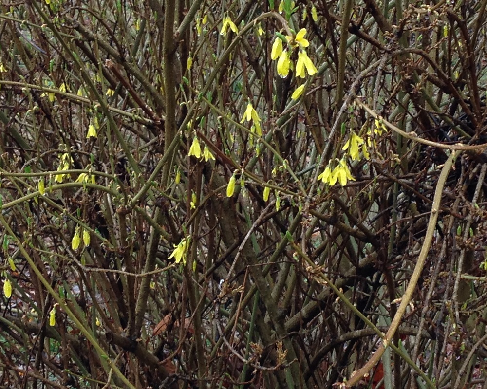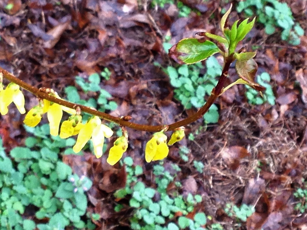 • While walking outside I noticed that the buttercups, and iris leaves were sprouting. Upon closer observation I saw blooms. Forsythia had a few blooms. There were buds on some buttercups. Creeping phlox was booming around the edges. I saw blooming dandelions. I think I saw crocus leaves sprouting. Nandina red berries are still on the shrub.